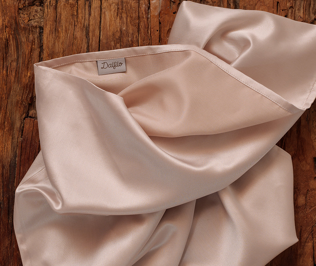 Ein innovativer Stoff, speziell entwickelt, um dir ein elegantes, langlebiges und strapazierfähiges Kissenbezug zu bieten: außen die glänzende und raffinierte Seide, mit zahlreichen Vorteilen für deine Haut und Haare; innen, als Unterstützung und Verstärkung, die zeitlose Baumwolle.